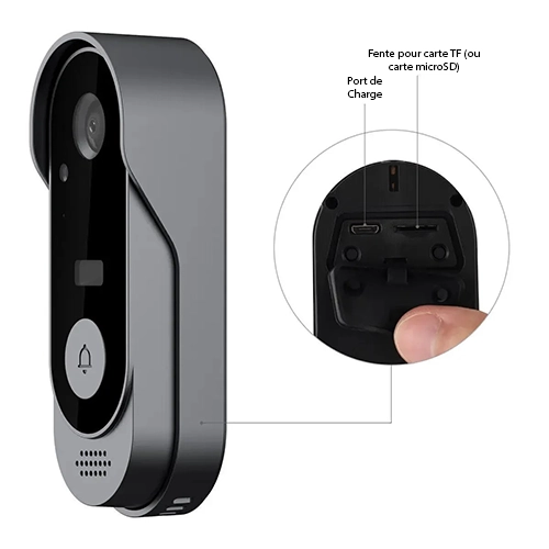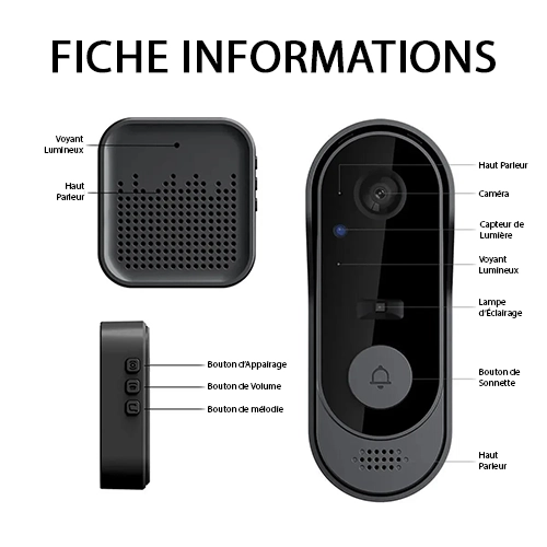 Compatible avec une application smartphone, cette sonnette WiFi avec caméra vous permet de répondre à vos visiteurs où que vous soyez.